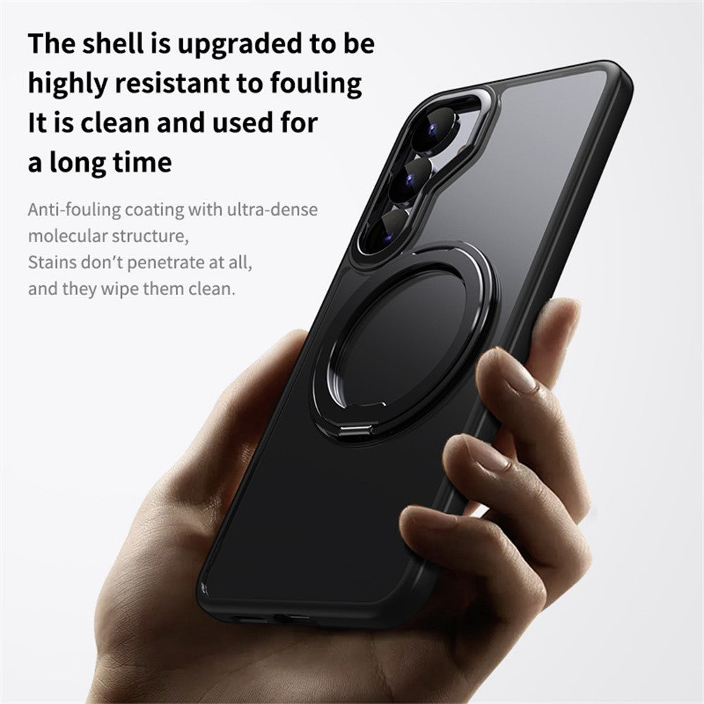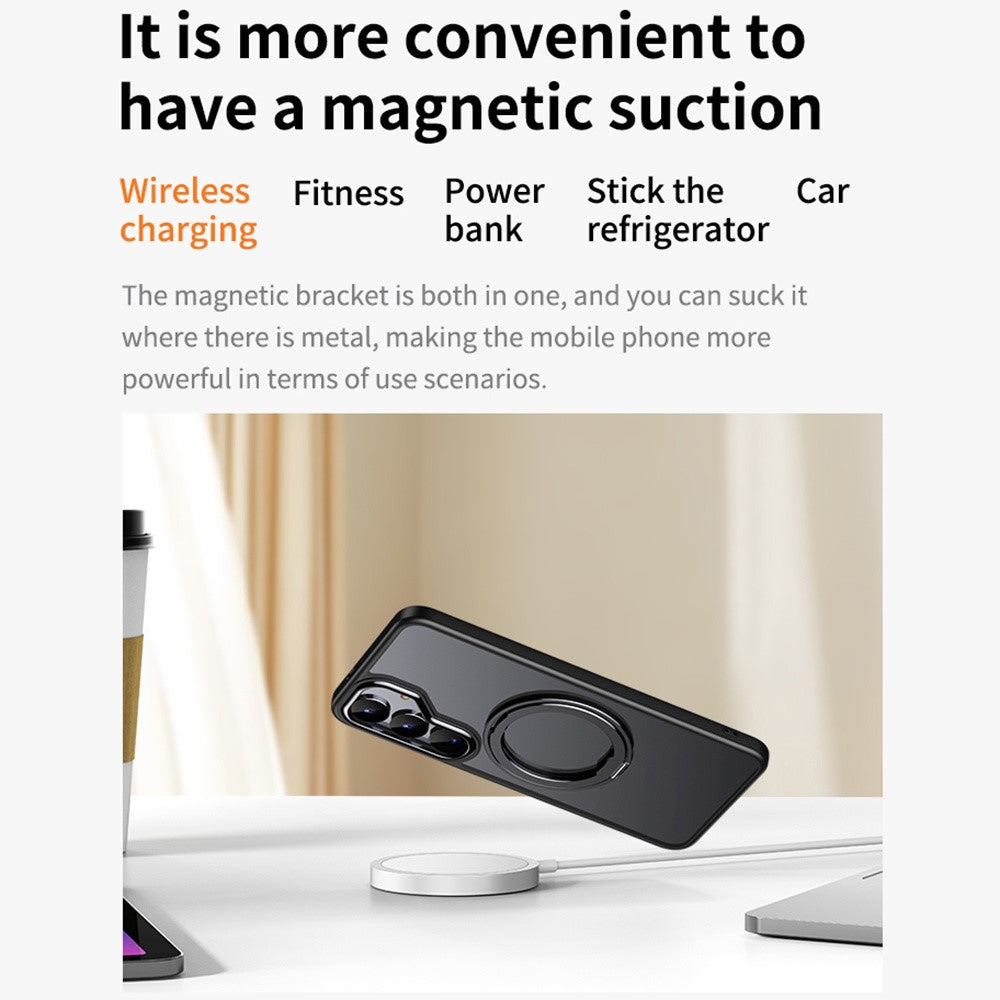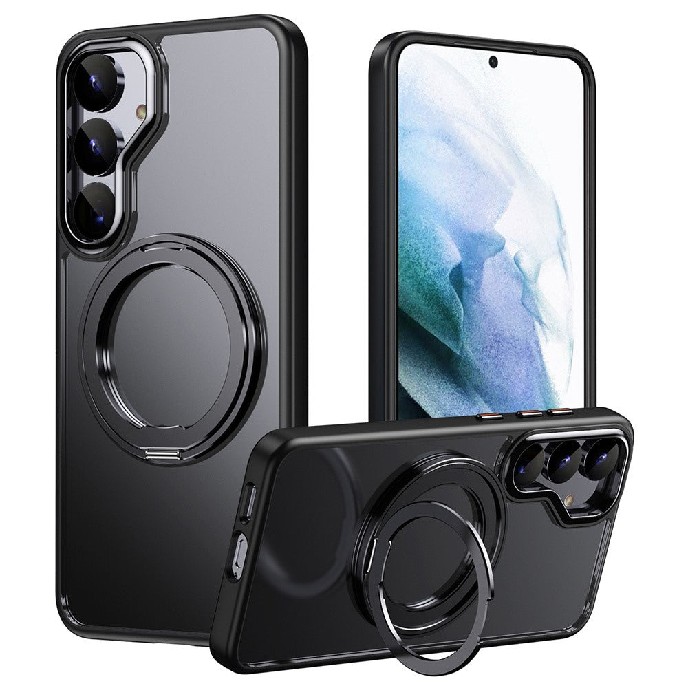 For Samsung Galaxy S25+ Magnetic Case TPU + Acrylic + Metal Kickstand Matte Phone Cover