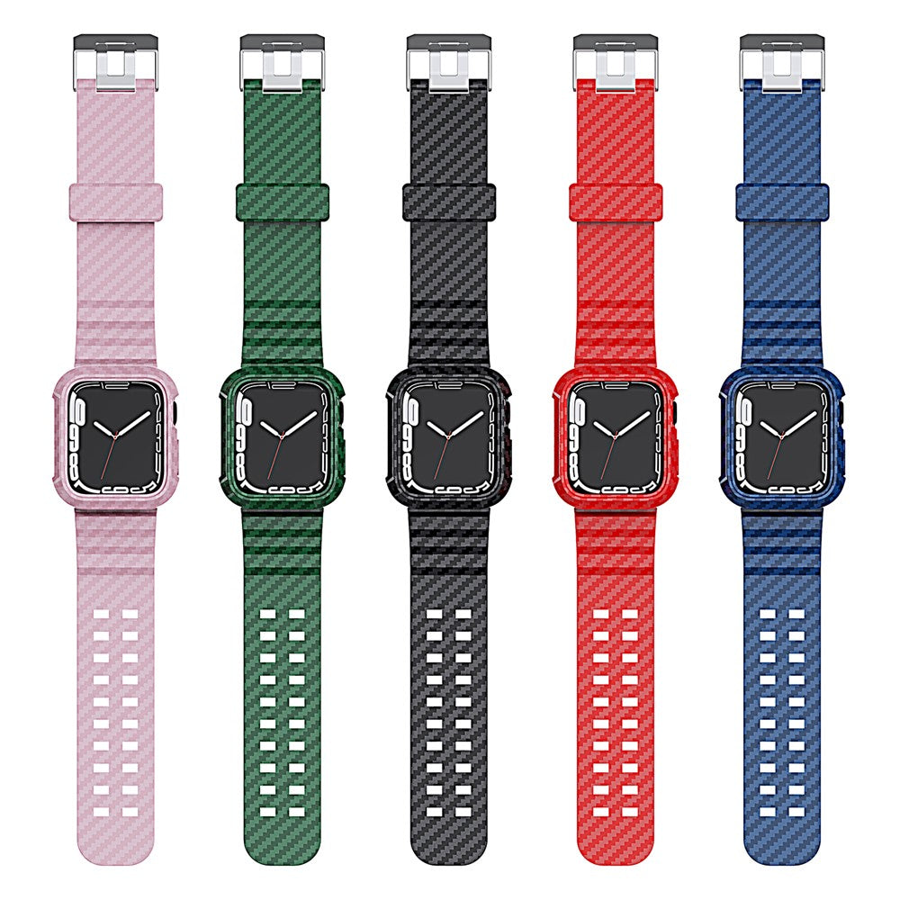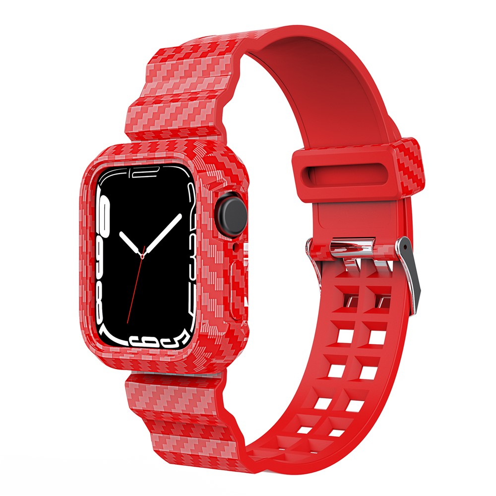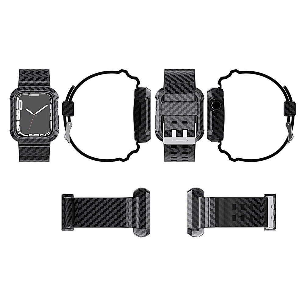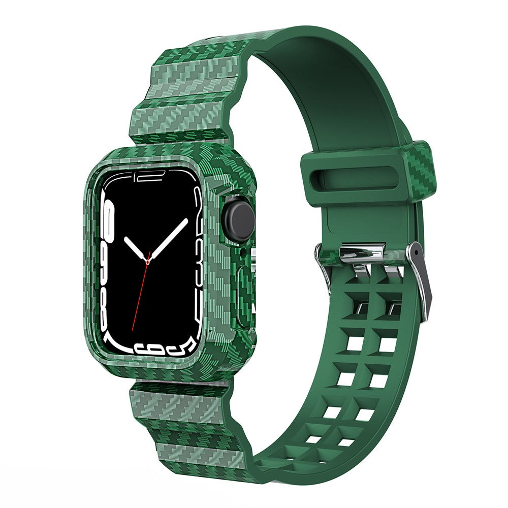 Carbon Fiber Texture 20mm TPU Watch Band Shockproof Rugged Sports Replacement Strap for Apple Watch Series 7 41mm