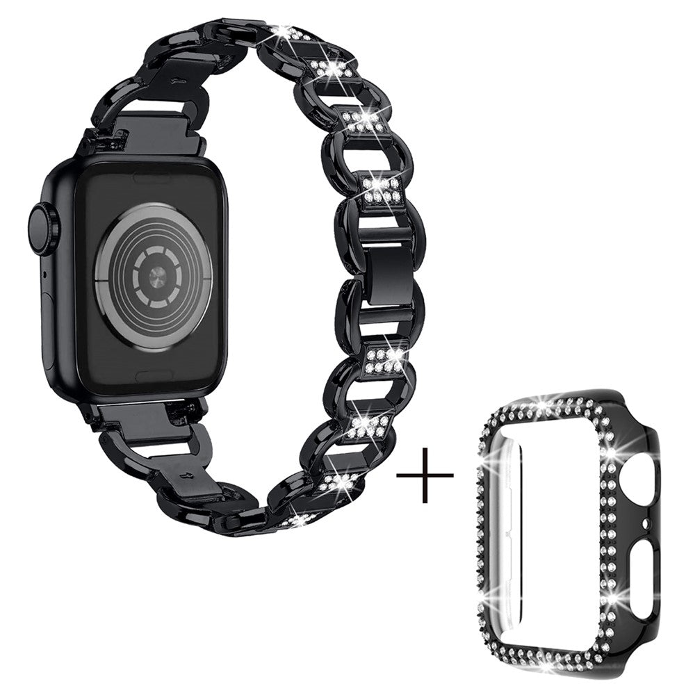 For Apple Watch Series 7 / 8 41mm Replacement Rhinestones Decor Oval Alloy Strap + PC Watch Protective Case